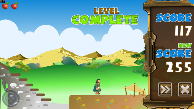 Upon completing a level within the game, you will receive a special item. For example, you may receive a key to a secret door. Or, you may receive an axe which can help Noah build the ark or some food for building your strength or for luring Lambton down from the mountain.